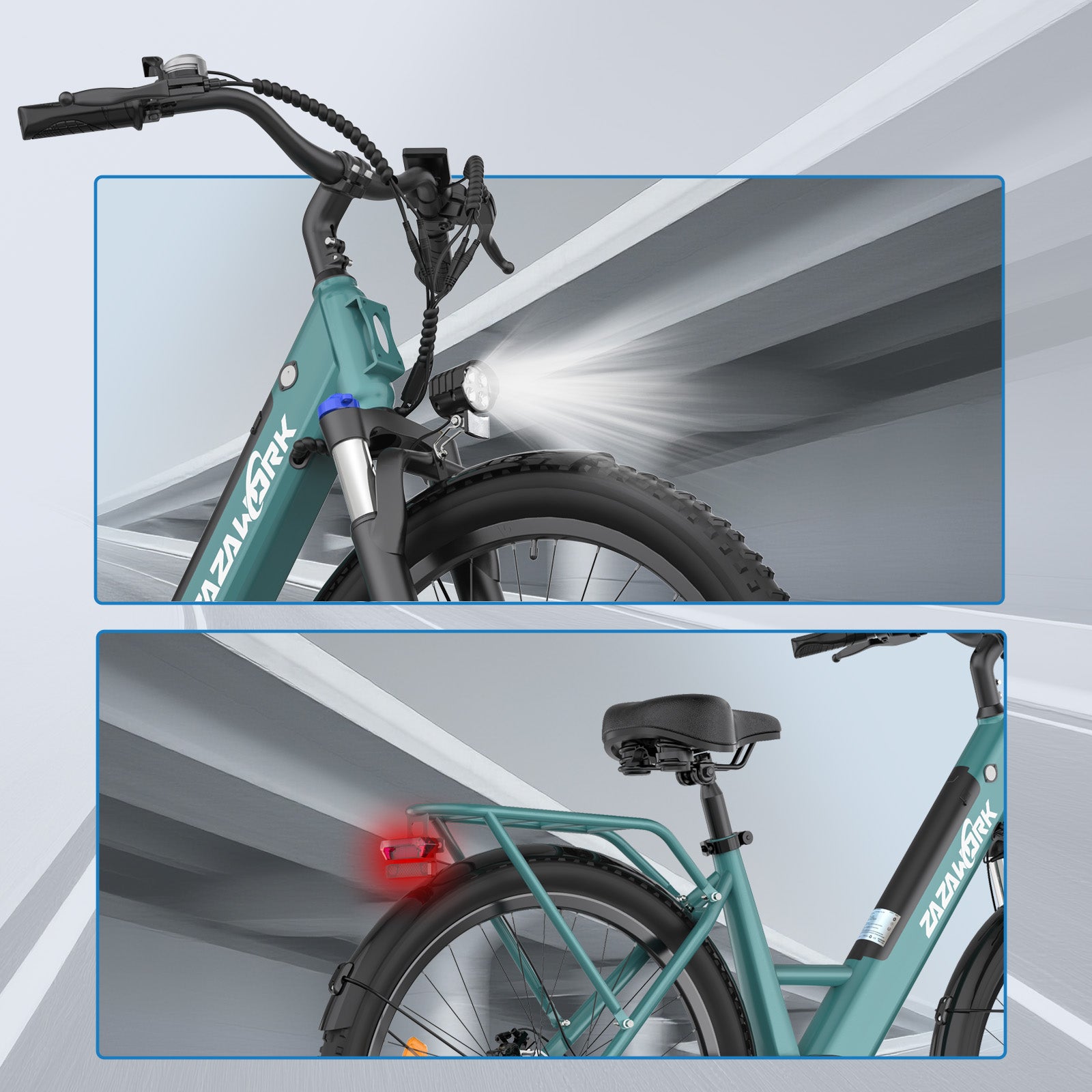 A bright front LED light and a high-visibility rear tail light improve all-round visibility, helping ensure safer riding in both day and night conditions.