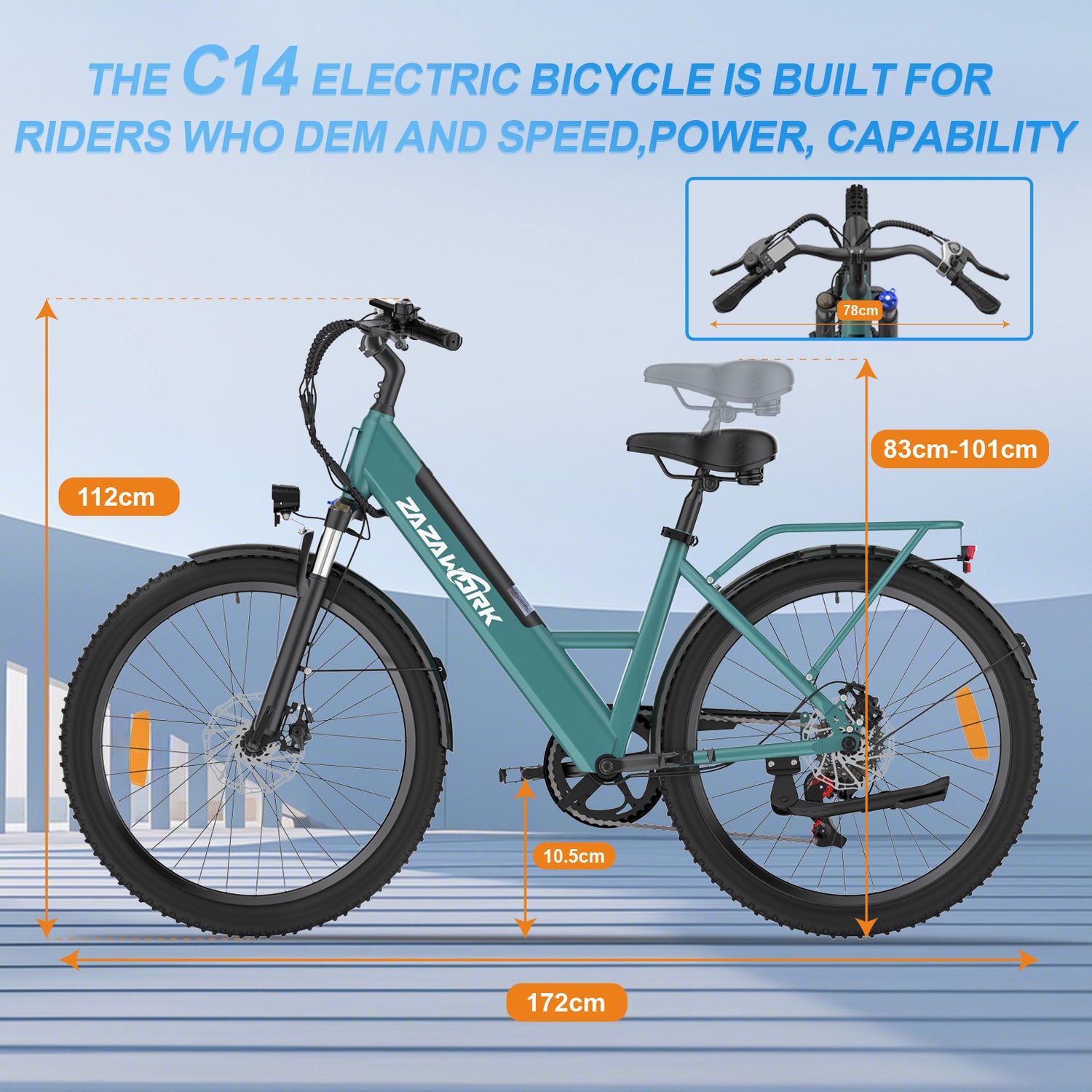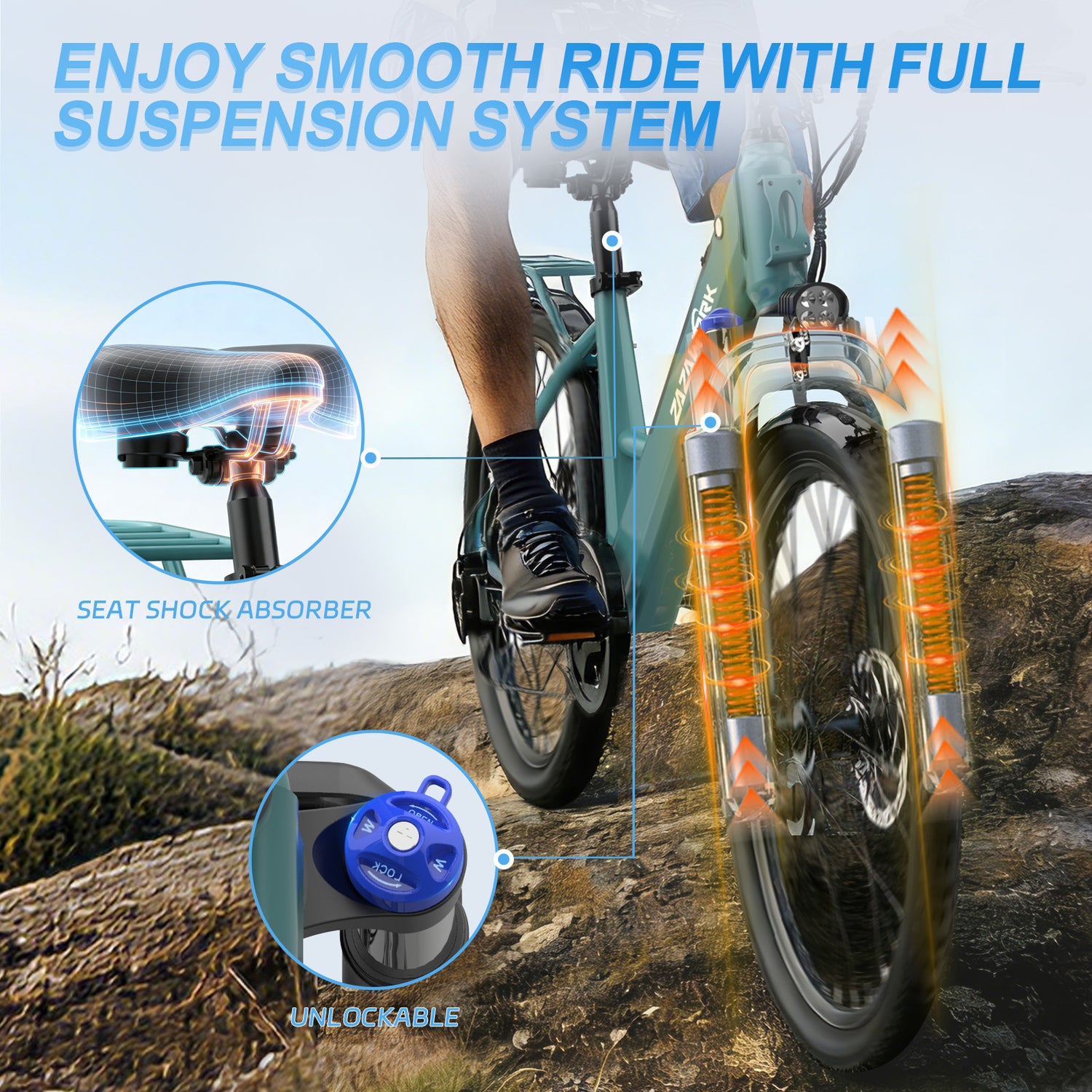Large 26-inch wheels provide better stability, comfort, and control on both city roads and off-road terrain.