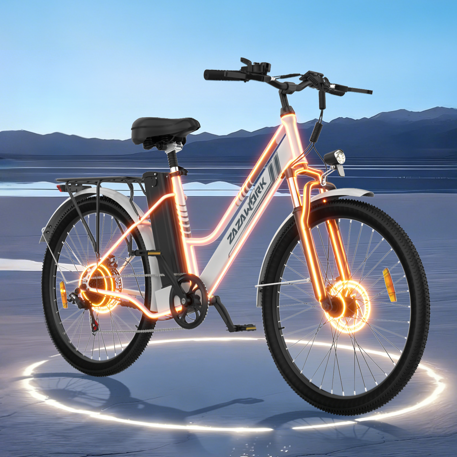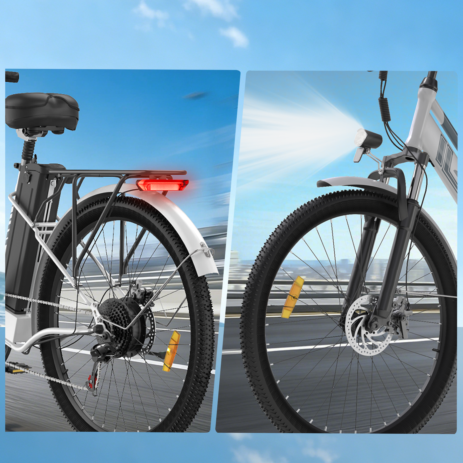 Bright front headlight and rear taillight provide enhanced visibility and safety in all riding conditions. Designed for day and night use, the lighting system ensures you are clearly seen and can see the road ahead with confidence.