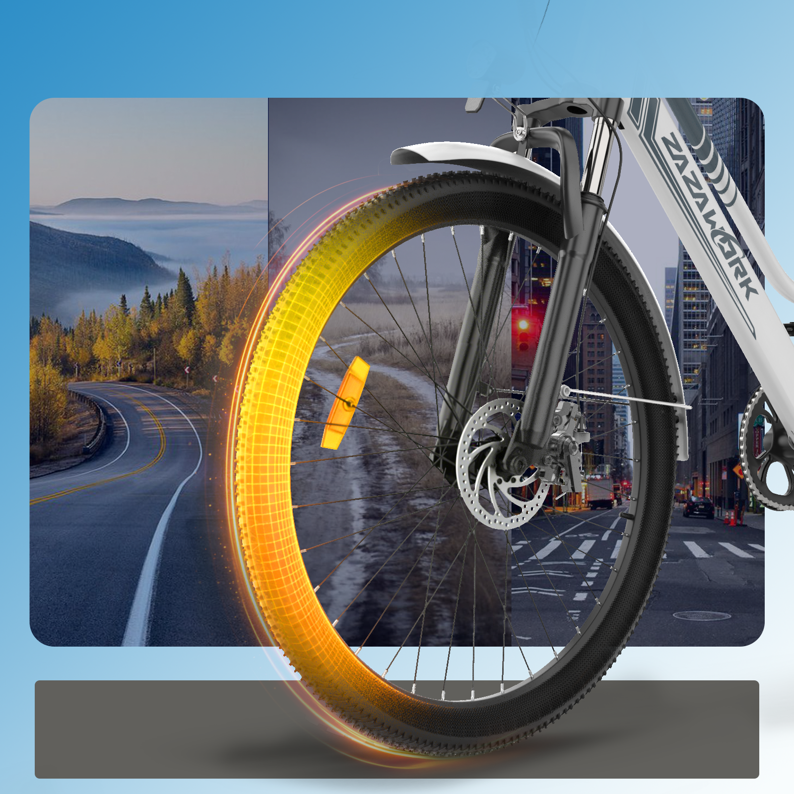 Durable 26×2.35″ tires with inner tube provide superior grip and stability on highways, muddy paths, dirt roads, and urban streets. Designed for all-terrain performance, they ensure a smoother, safer, and more comfortable ride.