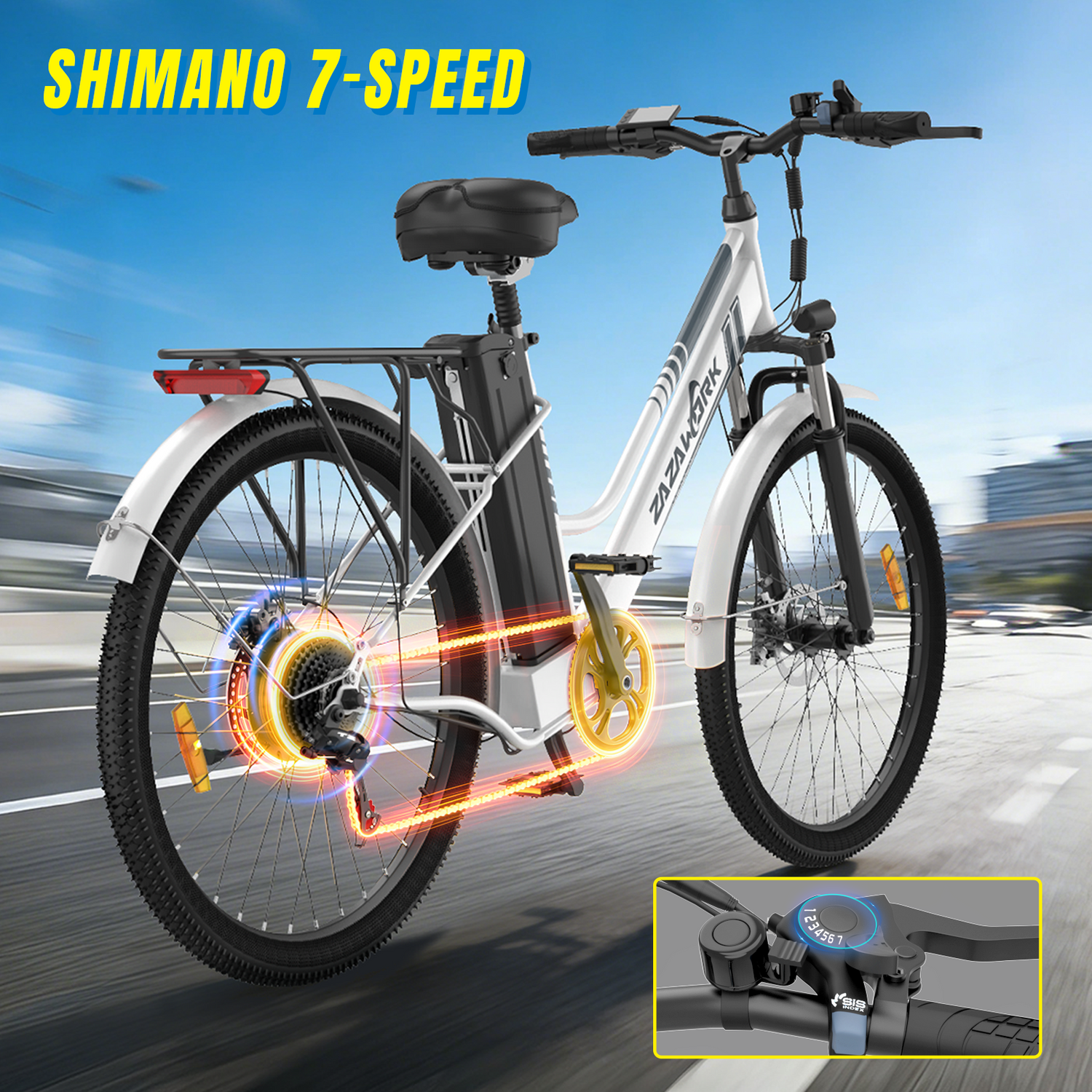 Easily switch gears for effortless riding on hills, city streets, and all terrains